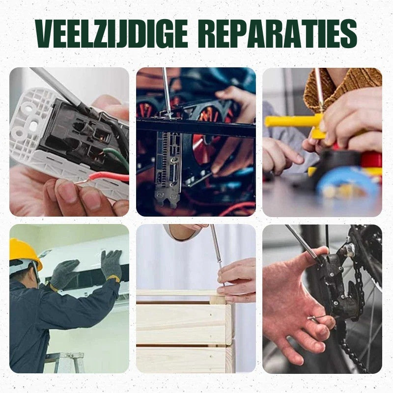 COMPACT EN DRAAGBAAR – Dit gereedschap is lichtgewicht en compact en past gemakkelijk in uw gereedschapskist, lade of tas. Hierdoor is het perfect voor reparaties onderweg of snelle oplossingen waar u het nodig hebt.
