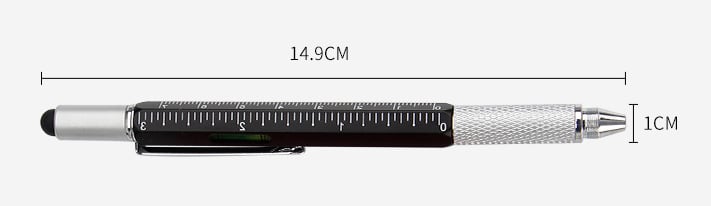 - Krachtige 6-in-1: functioneert als balpen, kruiskopschroevendraaier, platte schroevendraaier, capacitieve touch-stylus voor smartphones en tablets, waterpas en inch-liniaal.