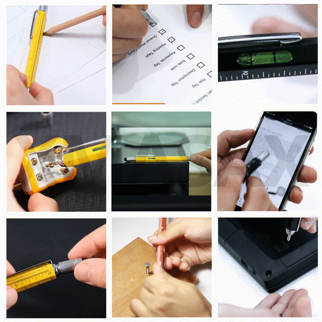 Elke pen is een mini 6-in-1 gereedschapsset die is gemaakt van sterk aluminium. Je kunt hem thuis, op kantoor of op de bouwplaats gebruiken. Voeg hem toe aan je handgereedschap, doe-het-zelfspullen of kantoorgadgets, en je bent altijd voorbereid!