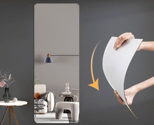 Gemaakt van acryl, breukvast, buigzaam, raakt niet beschadigd als het per ongeluk op de grond valt, geen echte glazen spiegel, zeer veilig, uw kinderen en huisdieren blijven veilig.