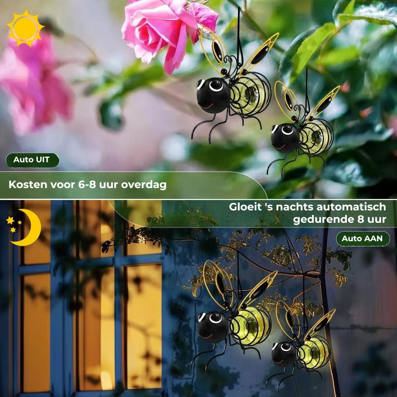 Geef uw buitenruimte een speelse touch met onze hangende zonne-energie bijenlampjes!