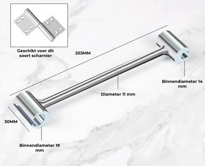 [Veelzijdig en betaalbaar voor speciale deuren] Dit gereedschap is speciaal ontworpen voor scharnieren op branddeuren, veiligheidsdeuren en cleanroomdeuren en zorgt voor een juiste uitlijning en functionaliteit. Met twee verschillende maten (0,31-0,75 inch) is het niet alleen veelzijdig, maar ook kosteneffectief, waardoor het een must-have is voor reparateurs, onderhoudsteams en iedereen die met speciale deuren werkt.