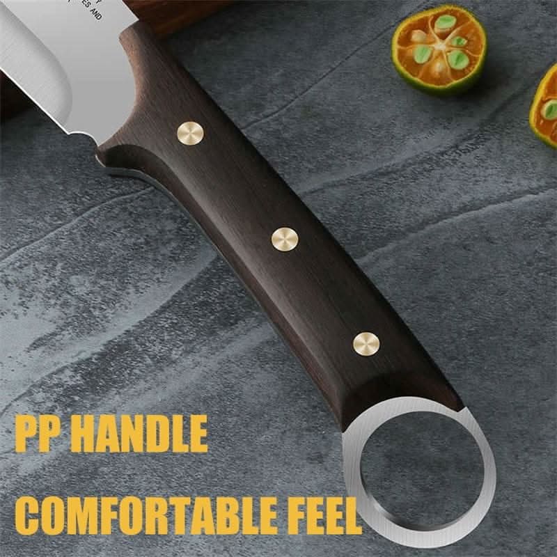 HOOGWAARDIG MES – Gemaakt van hoogwaardig staal en behandeld met een hogetemperatuurafschrikking, wat zorgt voor uitstekende scherpte, duurzaamheid en corrosiebestendigheid. Het mes blijft langer scherp, wat zorgt voor consistente prestaties.