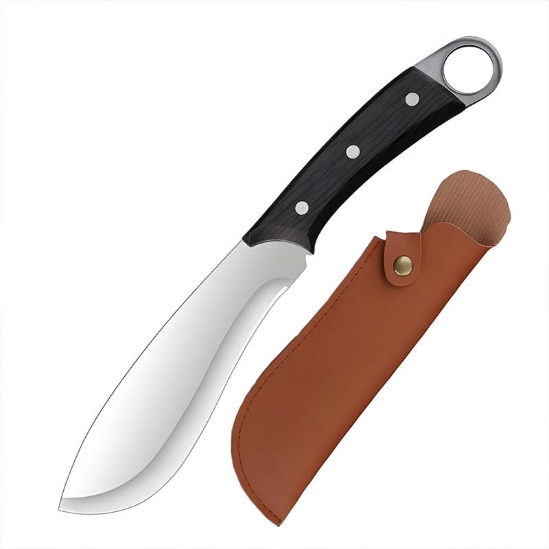MET BESCHERMENDE HOES – Wordt geleverd met een synthetisch leren hoes die het lemmet beschermt tijdens opslag en transport, voor optimale veiligheid en behoud van de scherpte. Het handvat is voorzien van een geïntegreerde riemlus voor veilig dragen en gemakkelijke toegang.