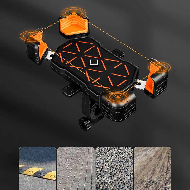 ANTI-SCHOKBESCHERMING – Met verdikte antislip siliconen kussentjes van 5 mm op elke hoek absorbeert deze houder schokken effectief en vermindert hij trillingen. De hoogwaardige siliconen voorkomen bovendien krassen op uw telefoon.