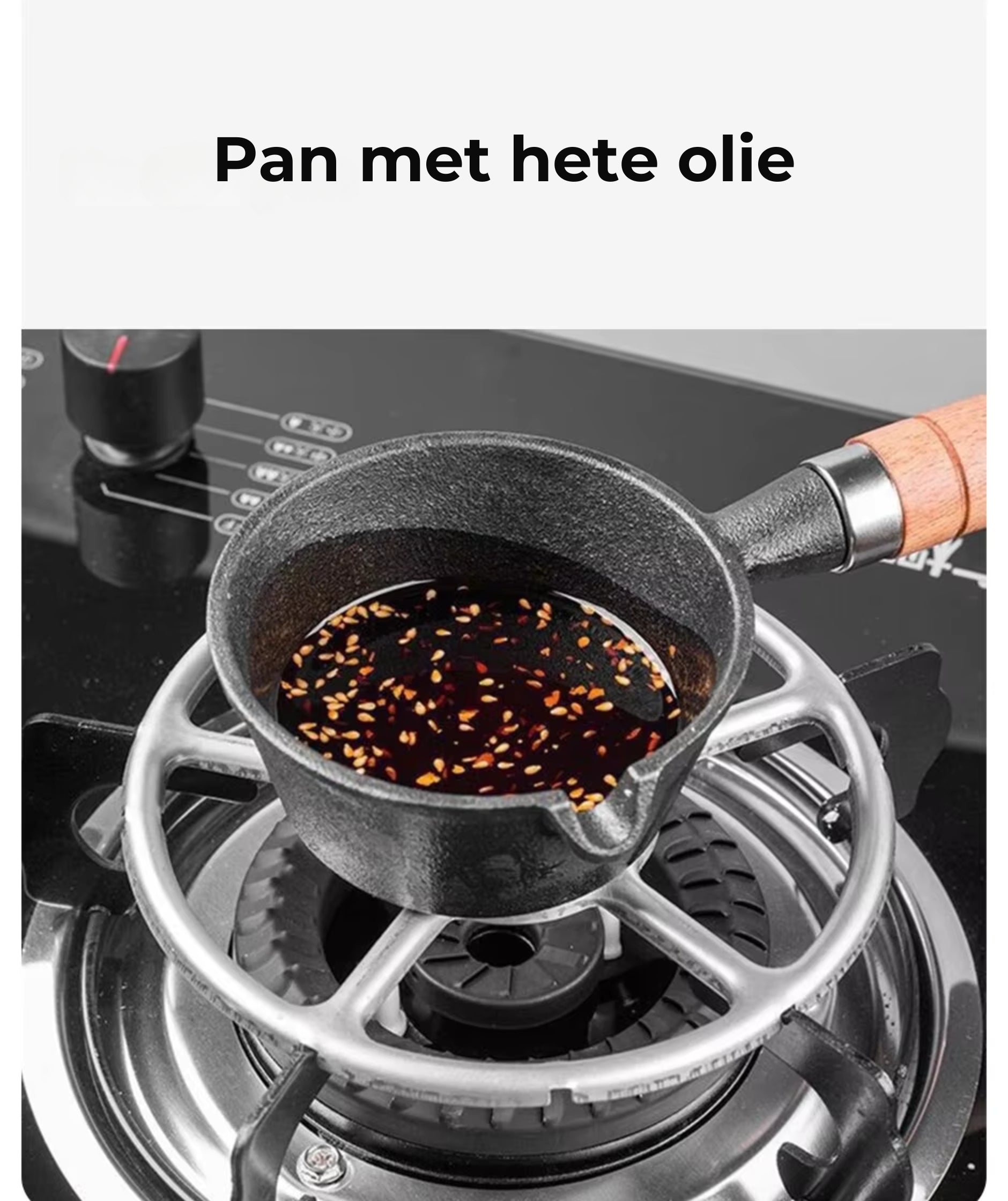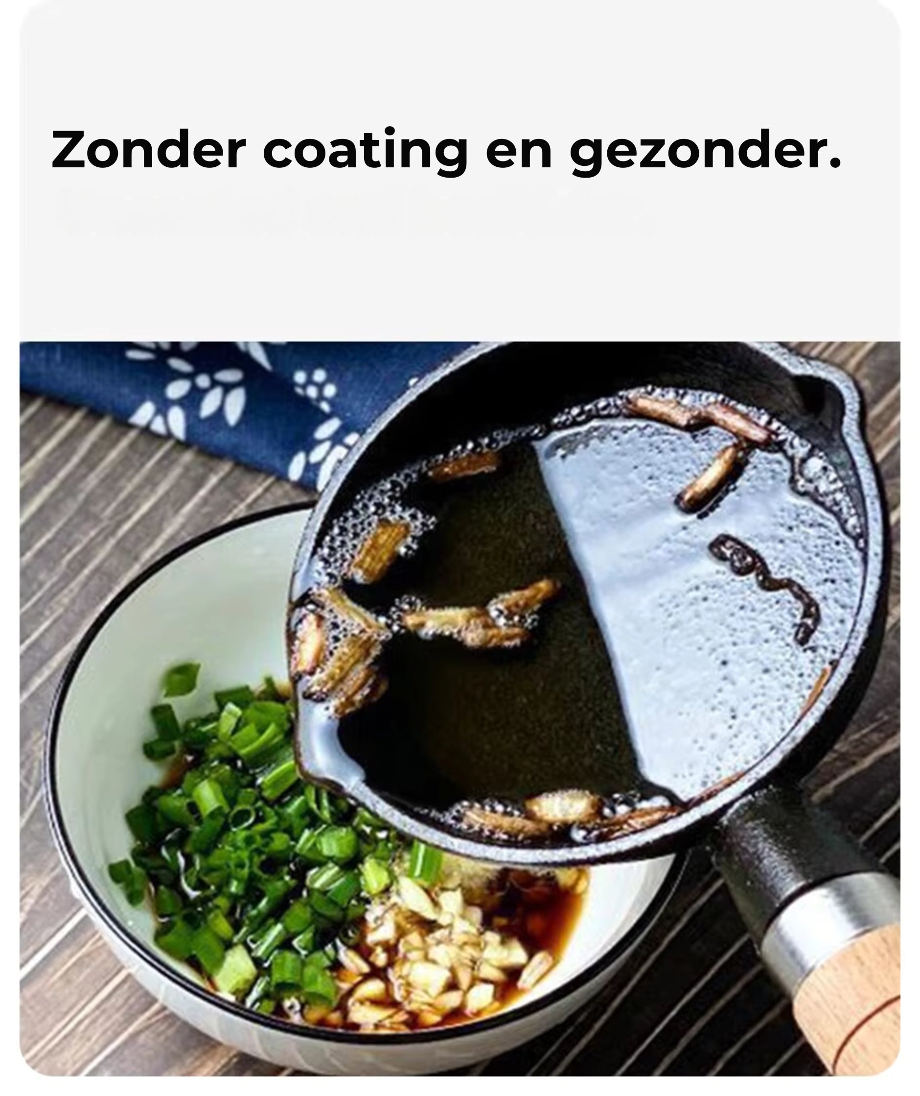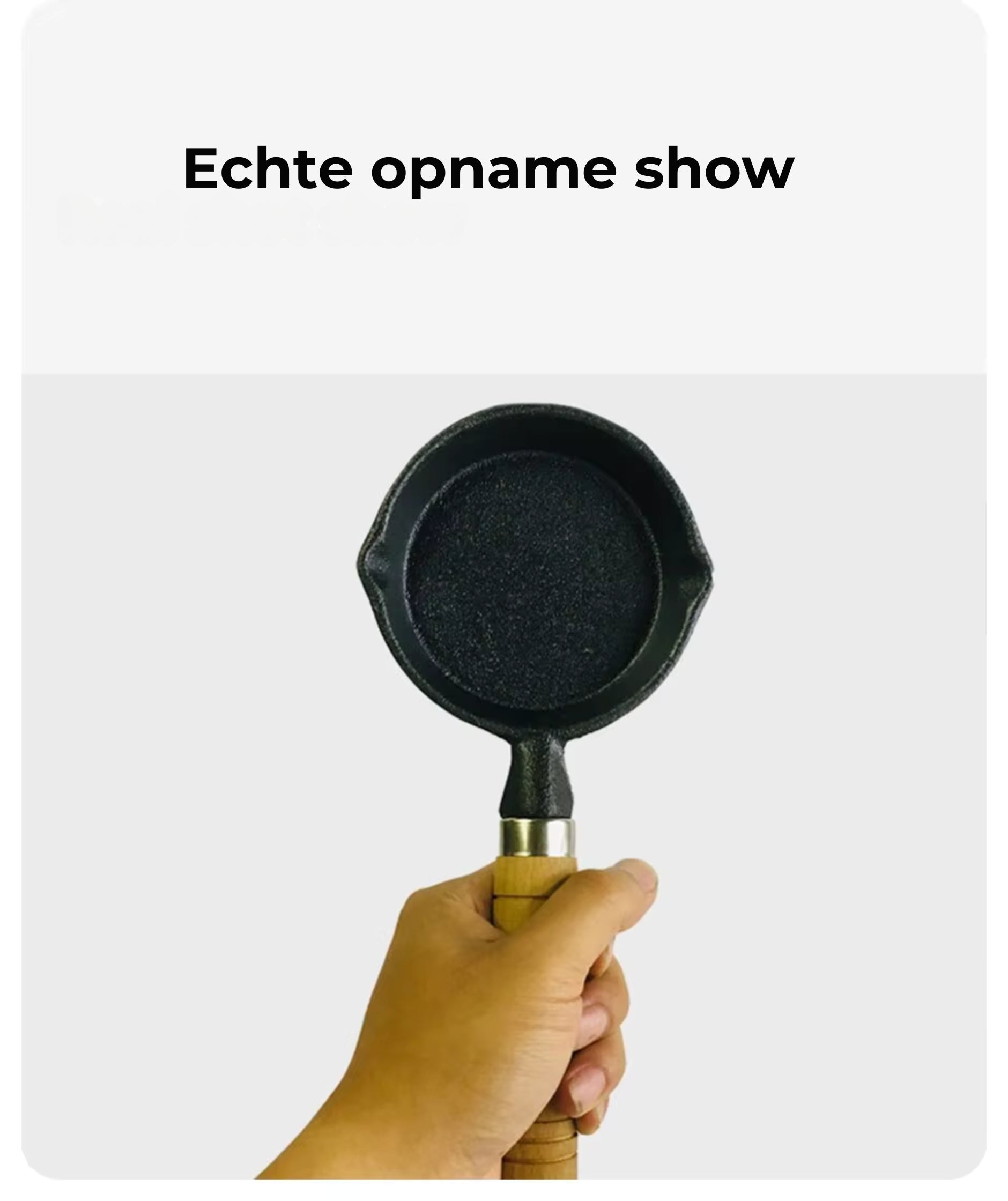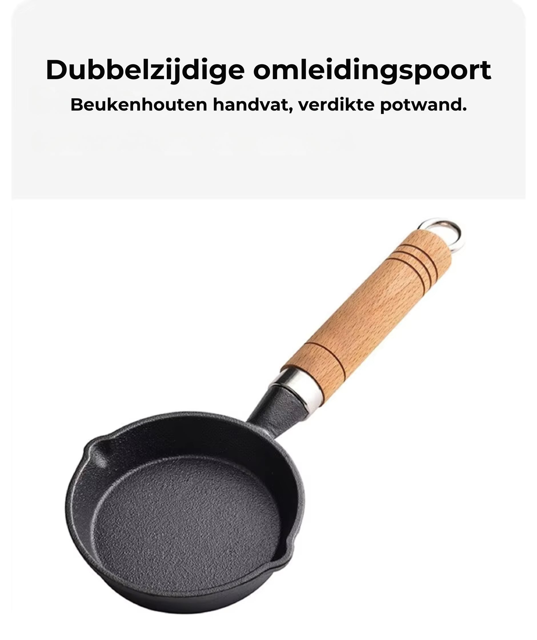 - Dubbelzijdige omleidingspoort, beukenhouten handvat, verdikte panwand.