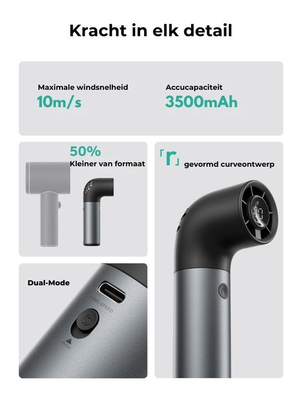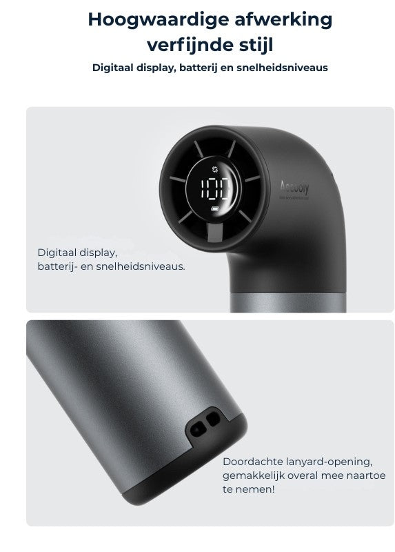 Zoek je een efficiënte, technisch geavanceerde oplossing om koel te blijven? Deze ventilator combineert draagbaarheid, slimme functies en moderne materialen in één krachtig toestel.