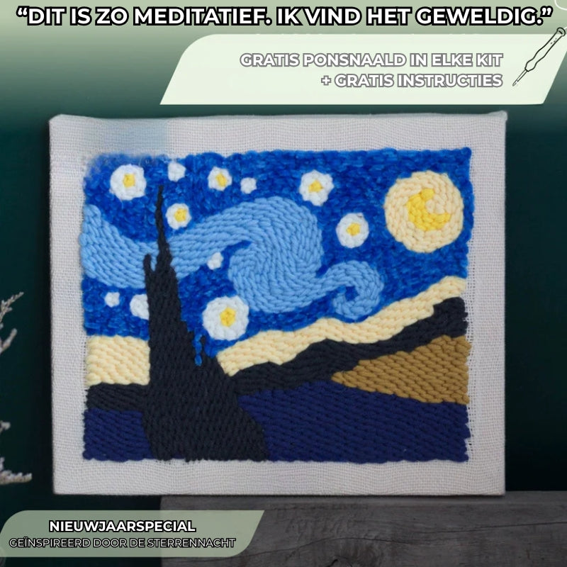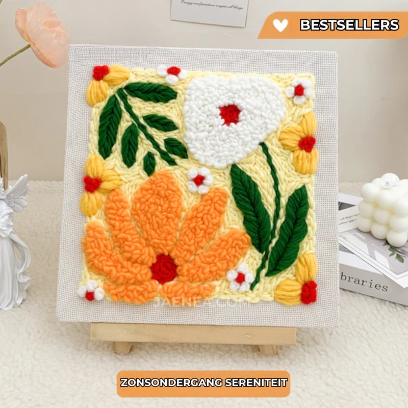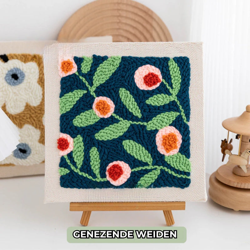 De herhalende, ritmische beweging van het punch stitching-werk werkt kalmerend en stressverlagend en biedt een meditatieve ervaring.