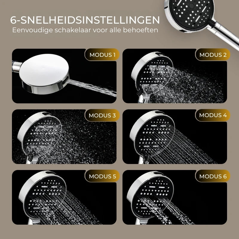 6 VEELZIJDIGE WATERMODI – Stel je douche-ervaring moeiteloos samen met 6 verschillende waterstroominstellingen. Wissel eenvoudig tussen zachte regen, massage, nevel en andere modi met intuïtieve knoppen, zodat je je douche kunt afstemmen op je stemming en behoeften.