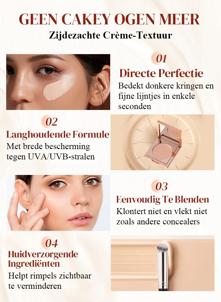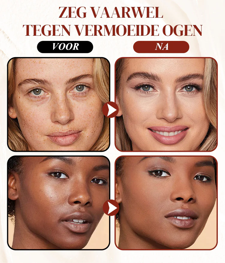 Neutraliseer donkere kringen direct, verhelder je onderogen en geniet van een natuurlijke, kreukvrije dekking – allemaal met huidverzorgende ingrediënten waar je gezicht dol op zal zijn.