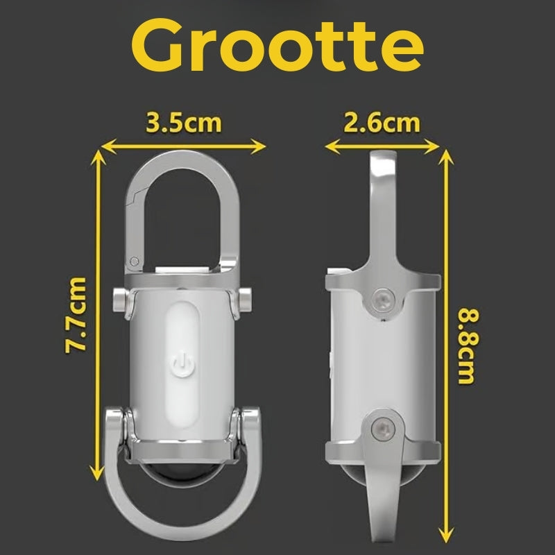 - 🔑 Compact en draagbaar: Deze sleutelhangerlamp is ongelooflijk klein en licht, waardoor u hem gemakkelijk overal mee naartoe kunt nemen. Stop hem in uw zak, bevestig hem aan uw sleutels of clip hem aan uw rugzak — hij is er wanneer u hem nodig hebt, zonder dat hij u belast.