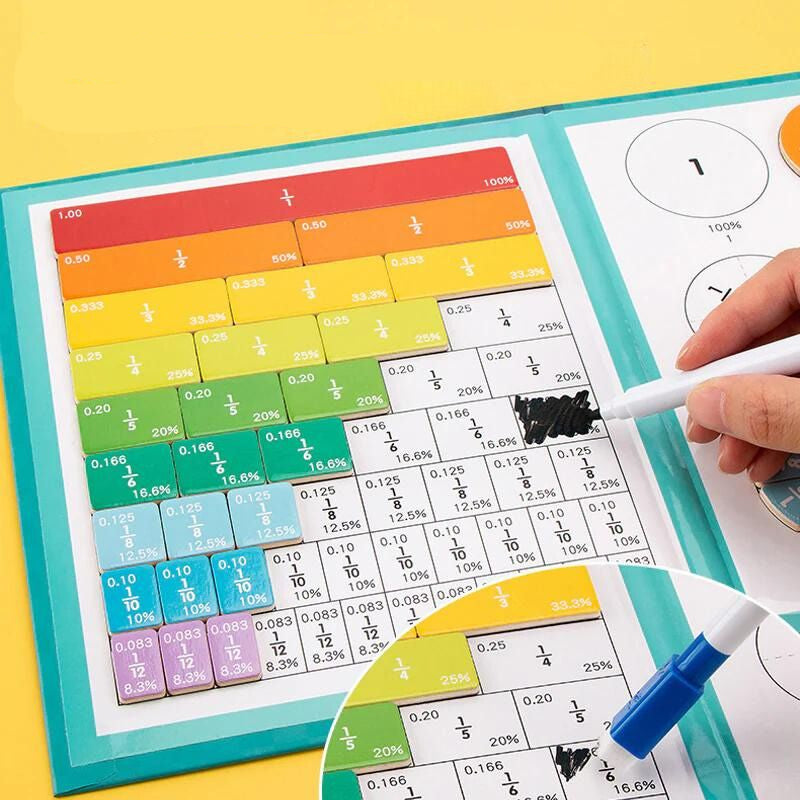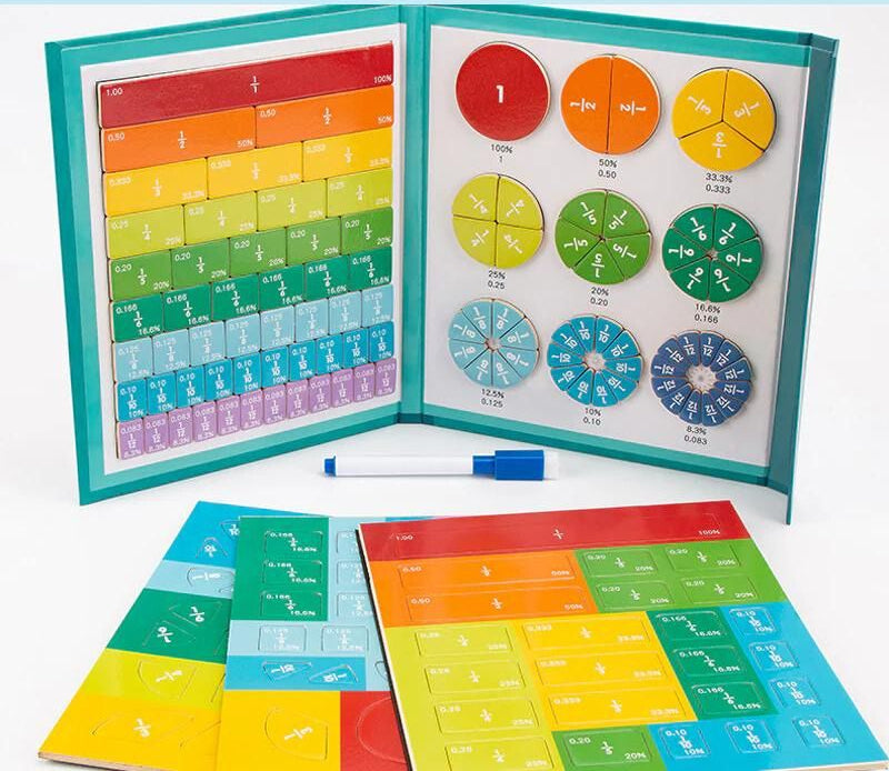 Onze magnetische breukenboekpuzzel voor kinderen zorgt voor een revolutie in de leerervaring door breuken leuk en boeiend te maken met speelgoed. Uw kinderen kunnen spelenderwijs leren rekenen.
