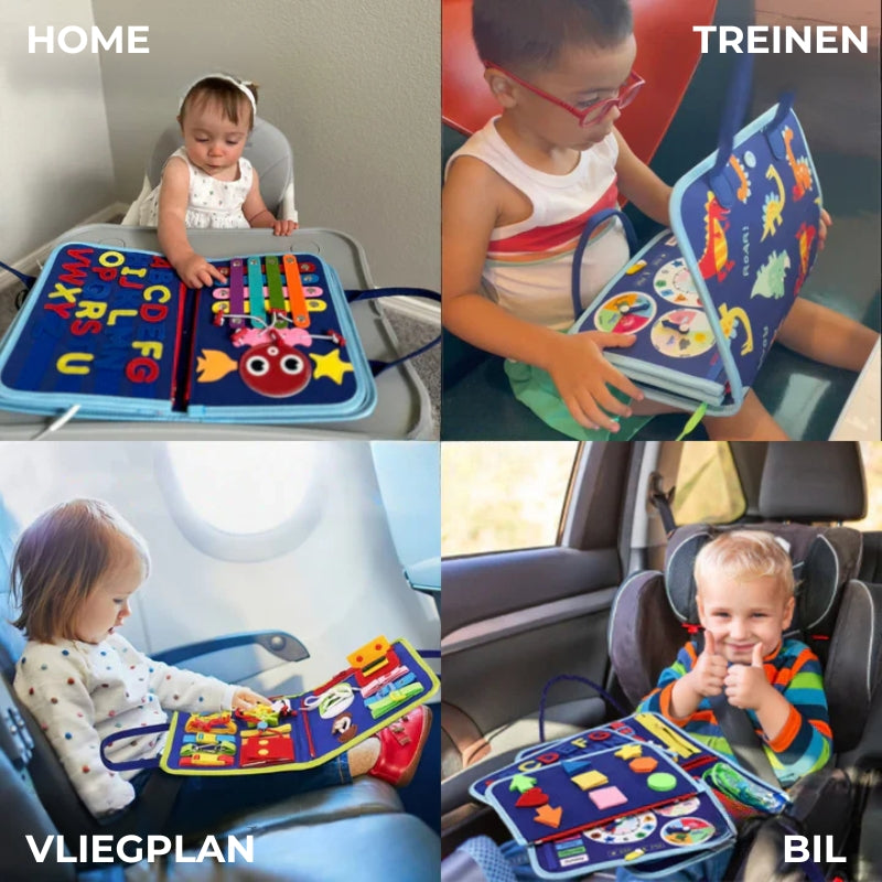 Zeg maar dag tegen verveling - of je nu thuis bent of op reis, dit activiteitenbord biedt een veilige en boeiende manier voor je kind om te verkennen, te leren en te groeien.