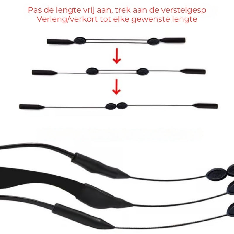 Verstelbaar en antislip - Deze brillenbandjes zijn verstelbaar van 20 tot 30 cm (volwassenen), geschikt voor verschillende hoofdomtrekken en zorgen voor een goede pasvorm rond het hoofd.